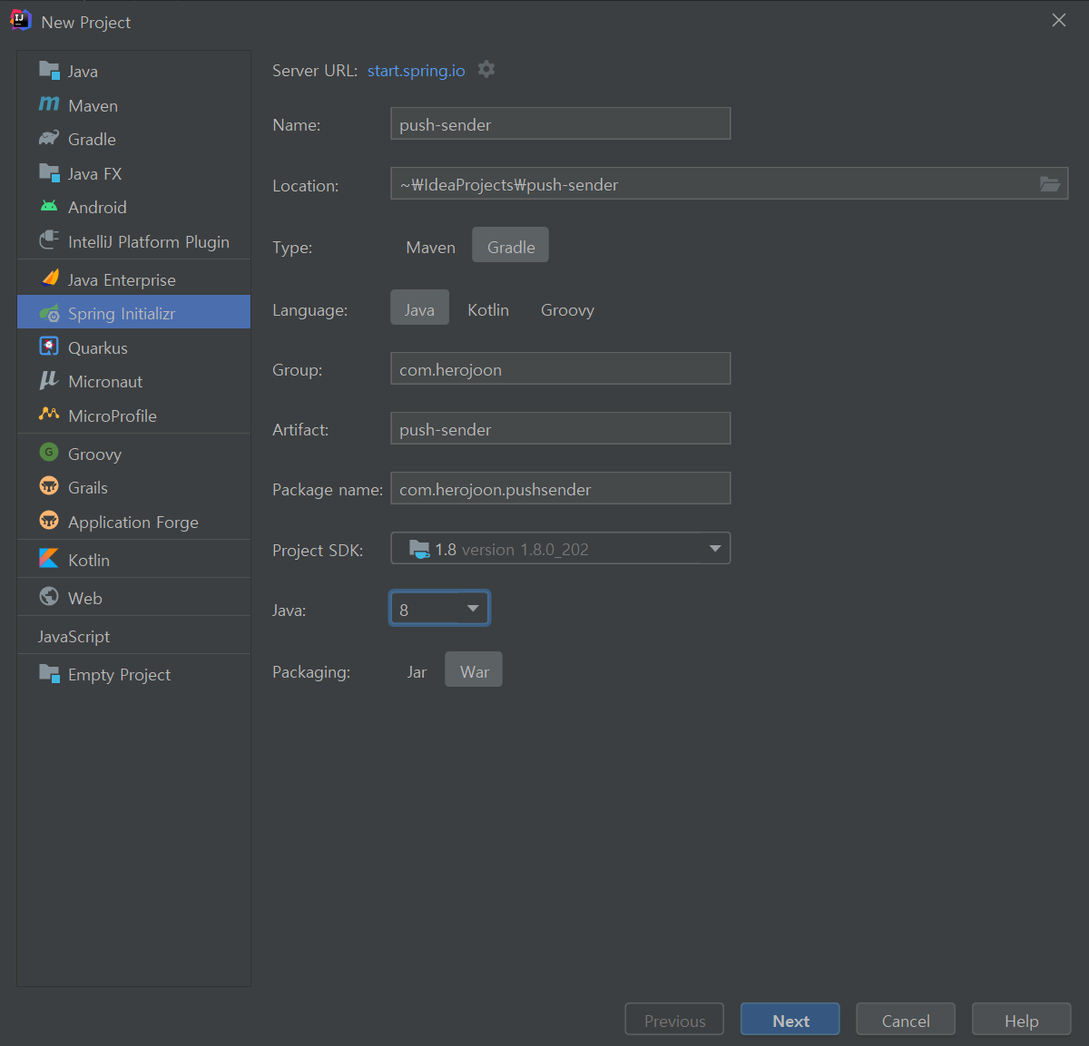 4. FCM Push발송 API Server 프로젝트 생성 (Sender)