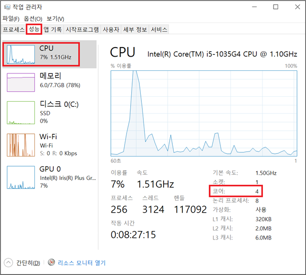 Windows CPU Core 개수 확인 본문