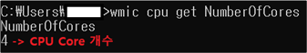 : cmd창에 아래 명령어 입력하여 CPU Core 개수 확인