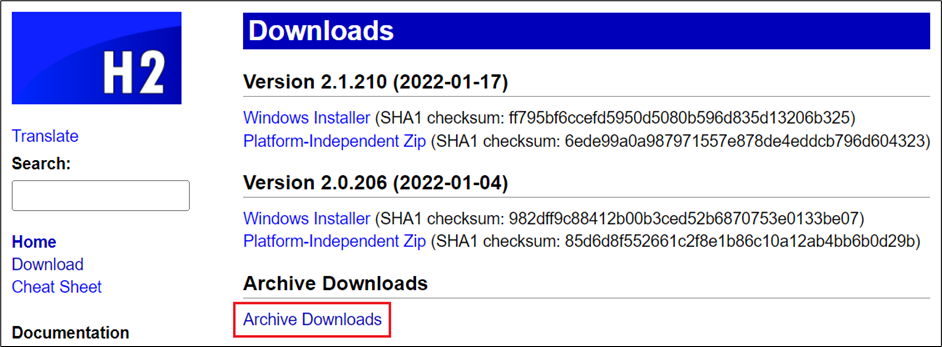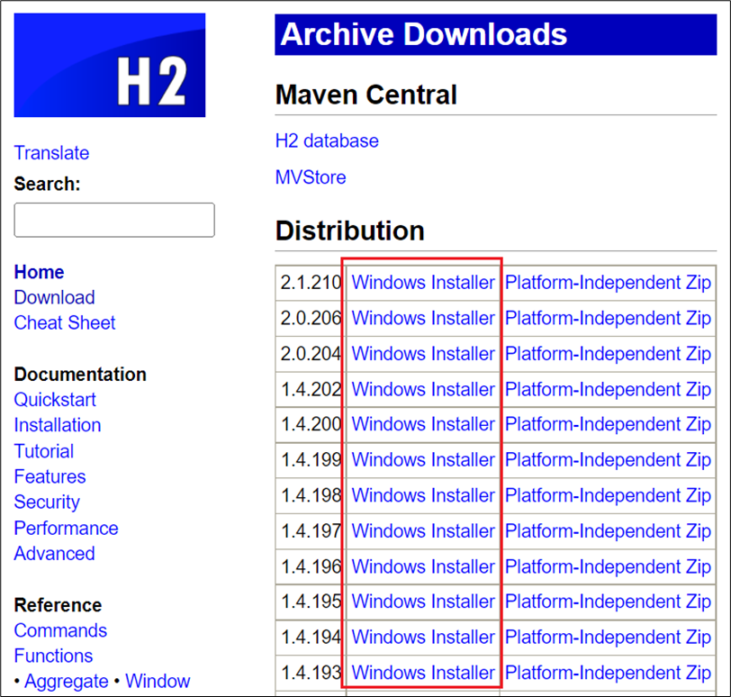 ( H2 Install Download Link: https://www.h2database.com/html/main.html )