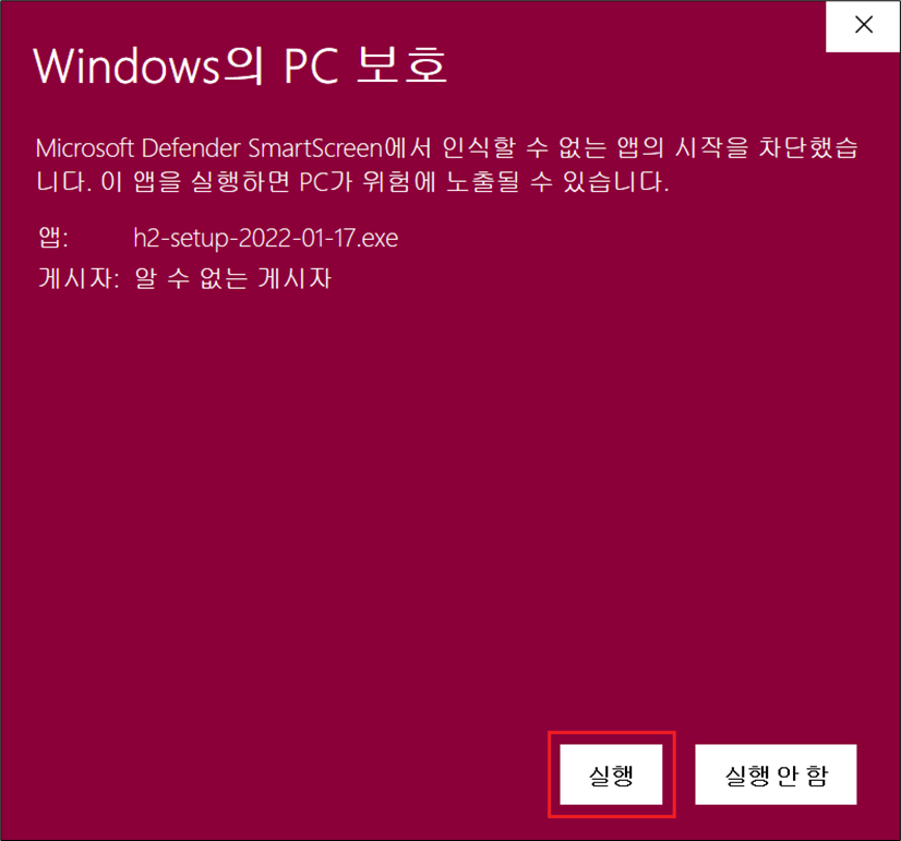 [추가 정보] - [실행]버튼을 클릭해서 설치해주시면 됩니다.