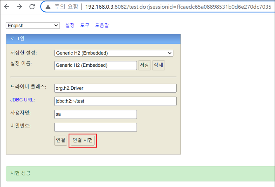 설치된 "H2 Console" 앱을 실행하면 웹 브라우저에 H2 Console 화면이 뜹니다.