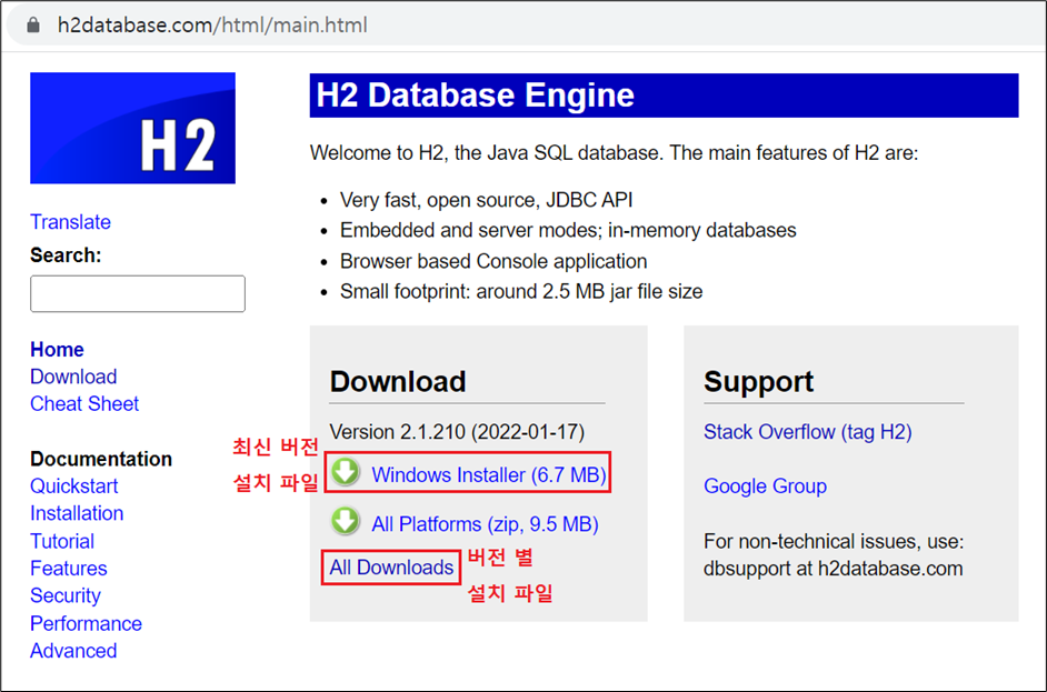 - 최신 버전을 설치하고 싶었으나, H2 Console 접속 시 오류 발생하여 이전 버전으로 설치하였습니다.