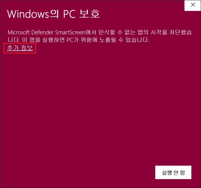 [추가 정보] - [실행]버튼을 클릭해서 설치해주시면 됩니다.