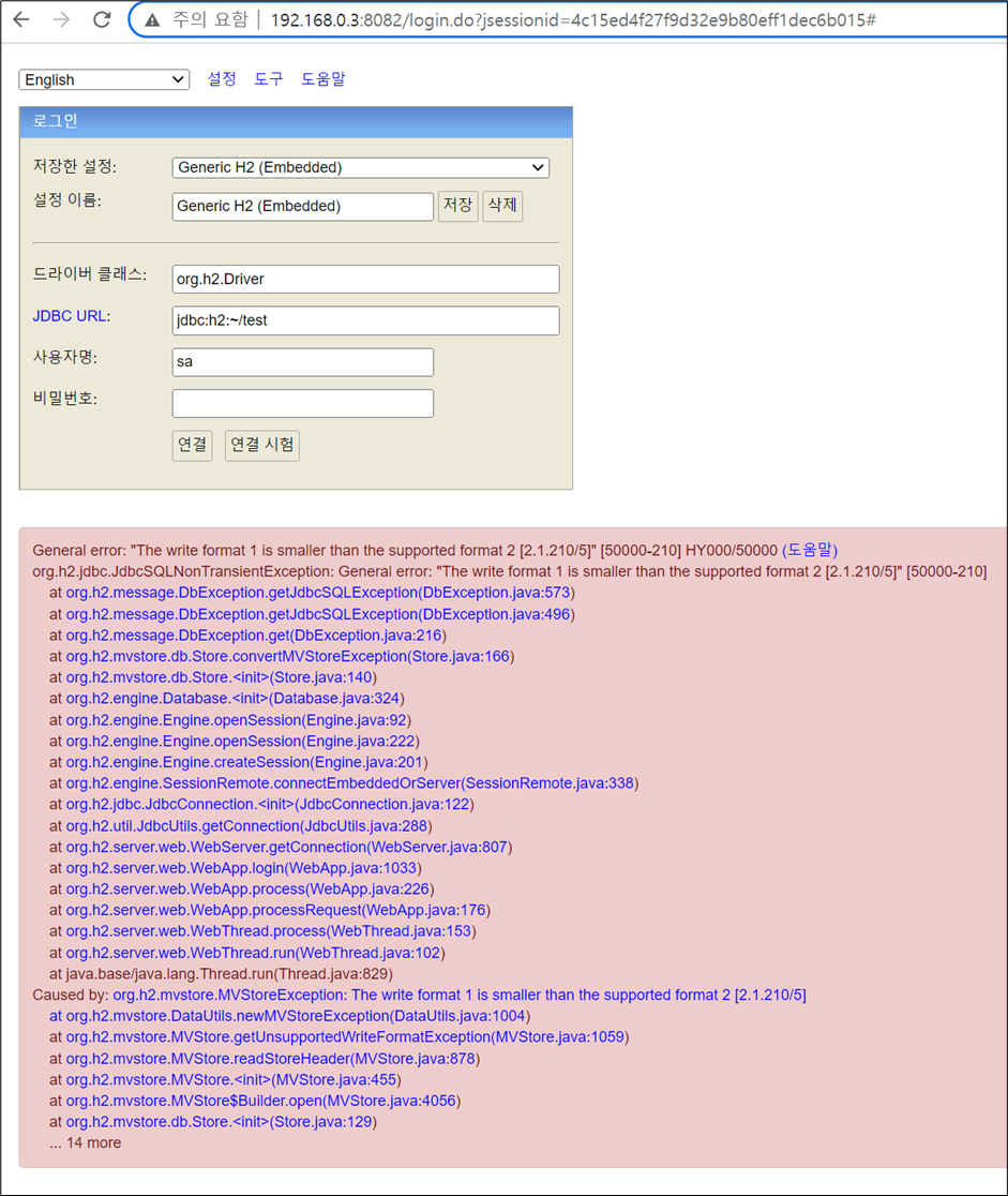 <연결 or 연결 시험 버튼 클릭시 오류날 경우>