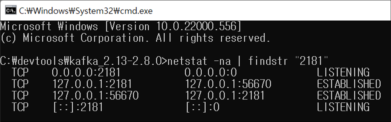 netstat -na | findstr "2181"