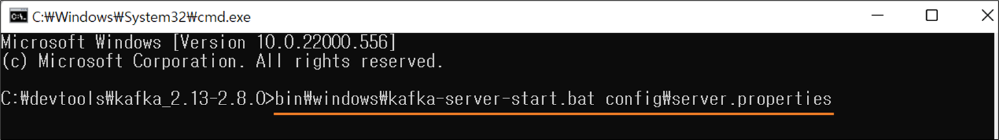 다시 kafka_2.13-2.8.0 폴더 위치에서 새로운 cmd창을 띄워줍니다.