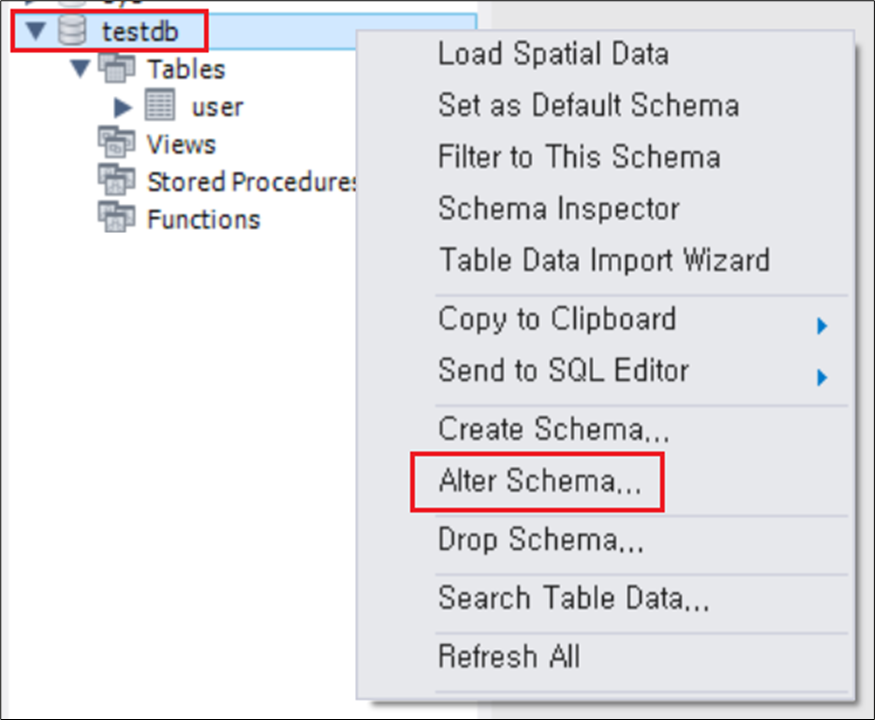 Workbench에서 db 오른쪽 클릭 - Alter Schema 선택