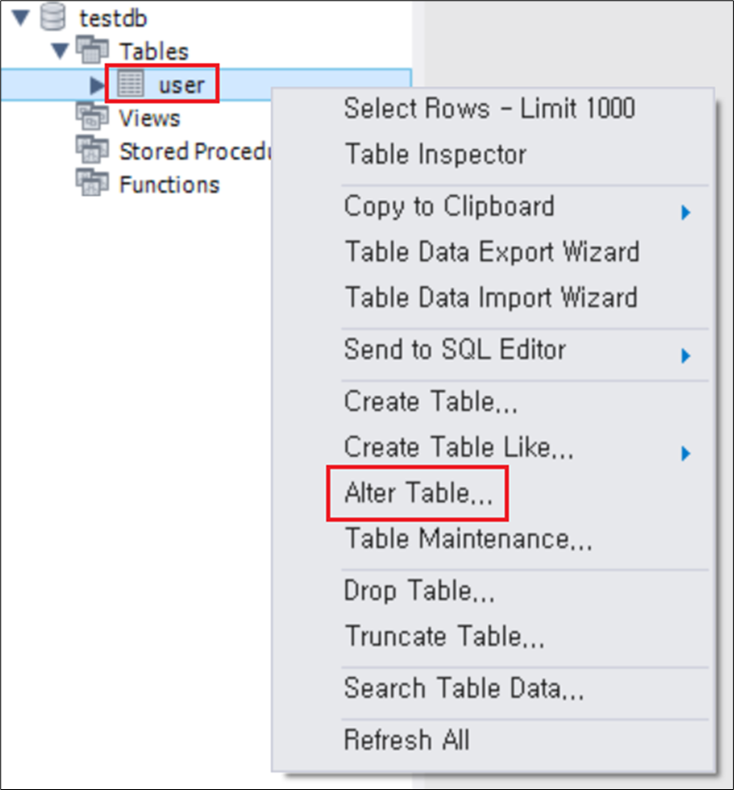 Workbench에서 table 오른쪽 클릭 - Alter Table 선택