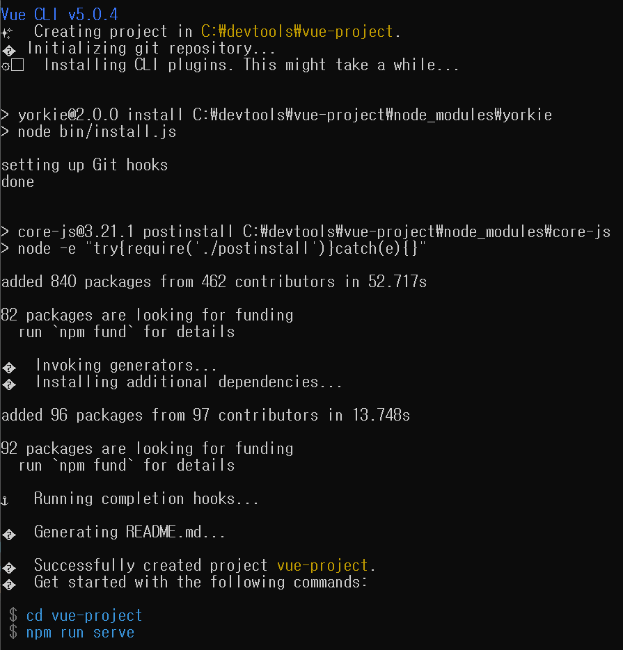 # VueJS 프로젝트에서 아래 명령어를 실행시켜 줍니다.