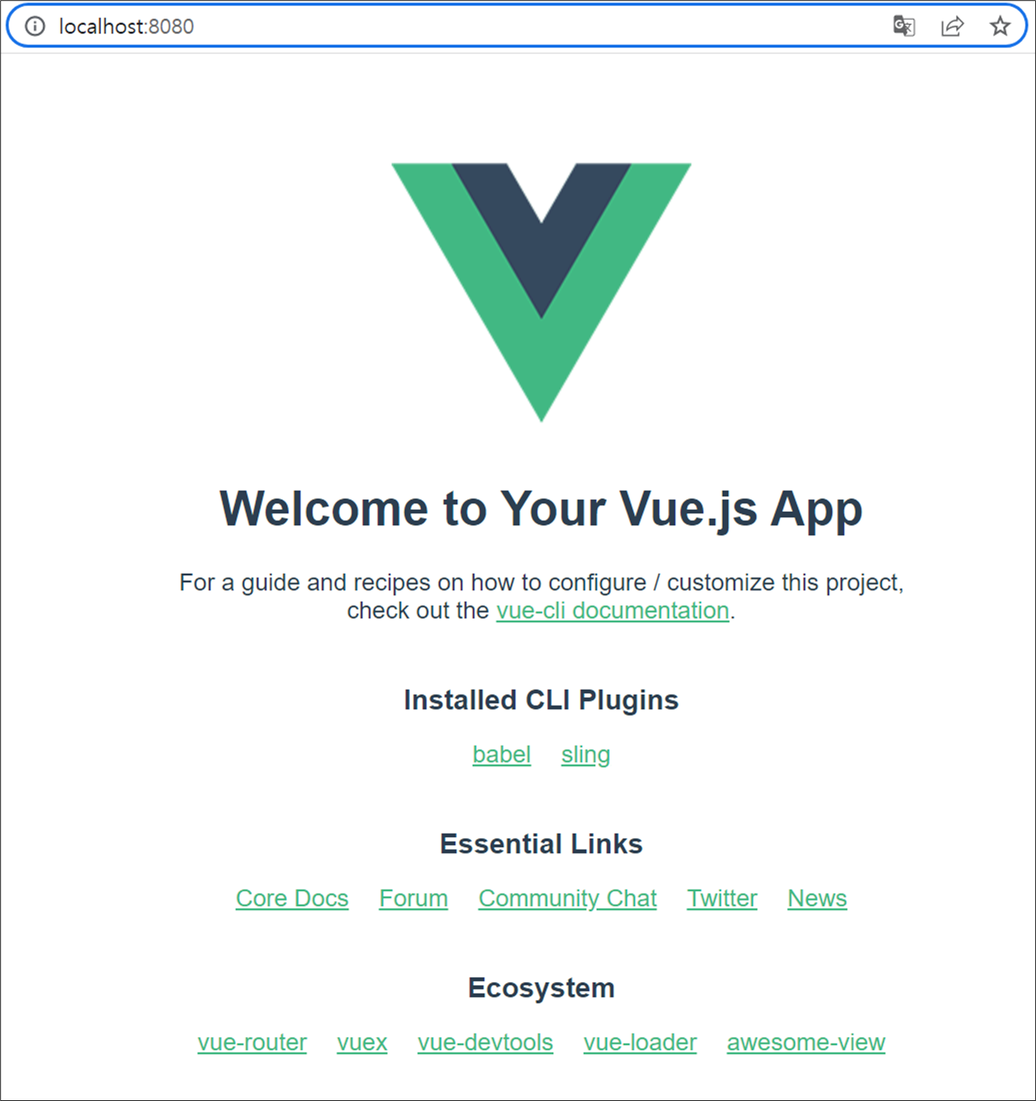 # http://localhost:8080으로 접속하여 기본 vue 화면을 확인합니다.
