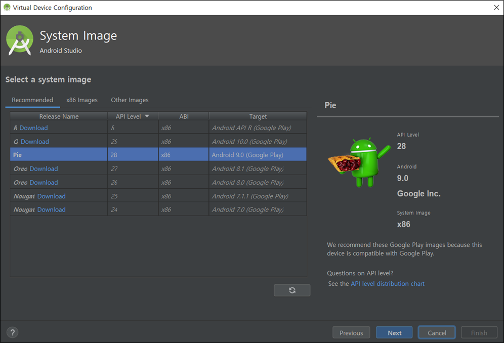 7) Android 버전 선택 후 Next