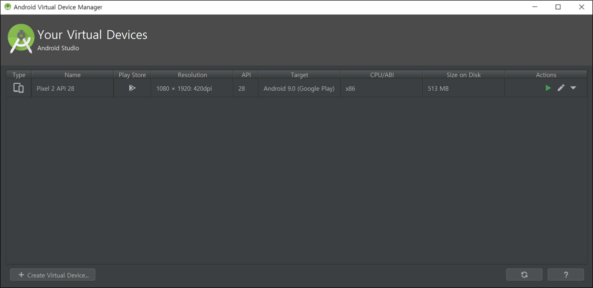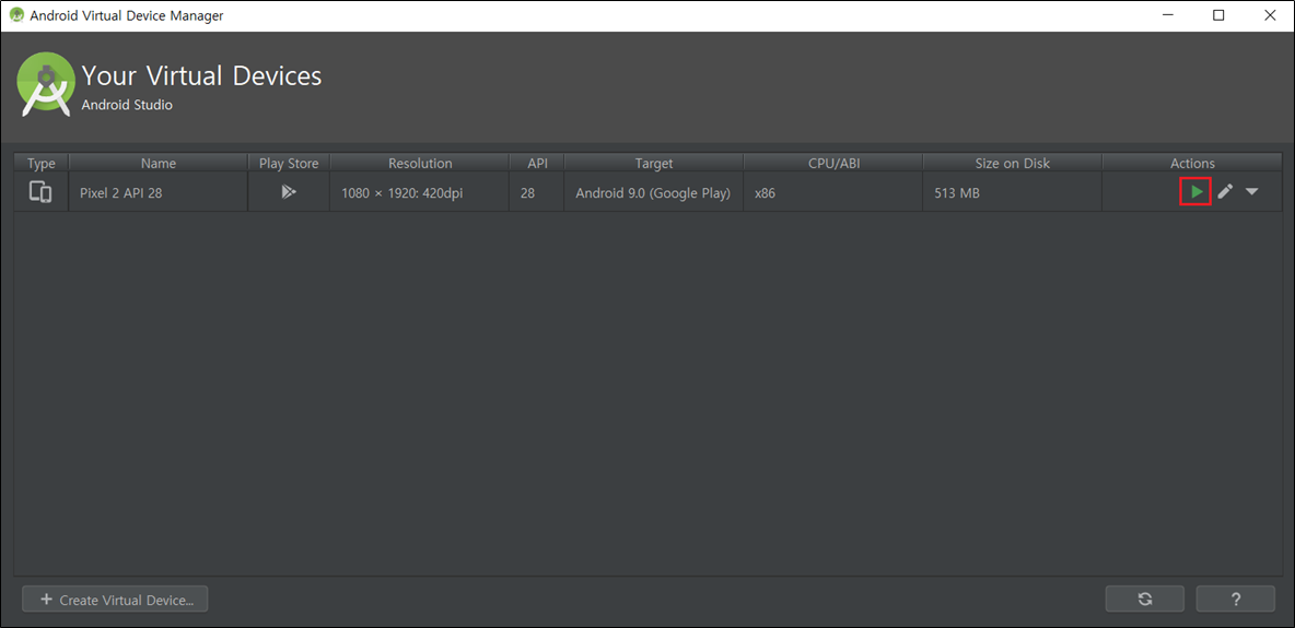 5) [Create Virtual Device] 선택합니다.
