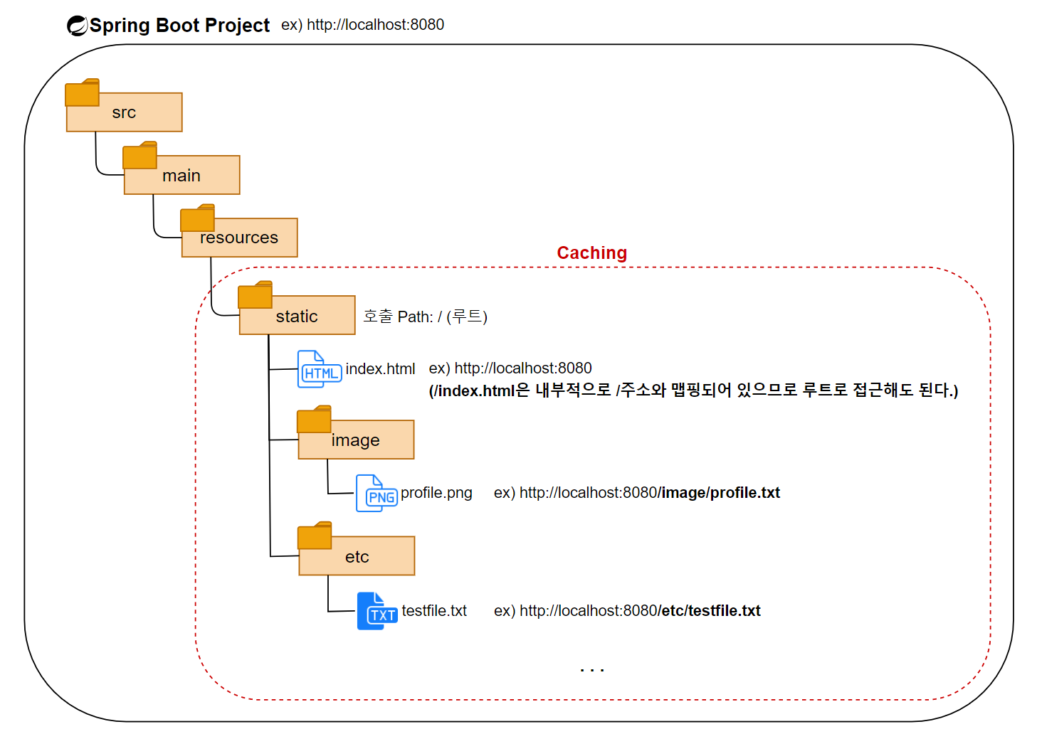 Spring Boot를 띄운 주소에 src/main/resources/static 아래 위치한 파일명 혹은 폴더/파일명으로 리소스에 접근할 수 있습니다. ex) http://localhost:8080/image/profile.png