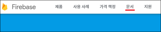 Firebase 홈 상단의 [문서] 메뉴로 이동합니다.