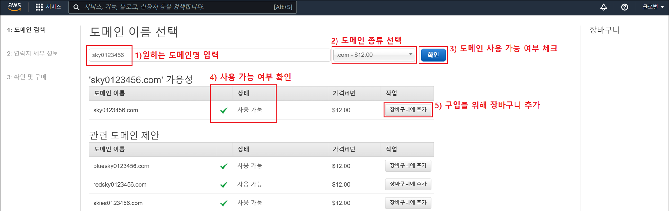 AWS에서 도메인 구입하는 절차 "자세한 설명"