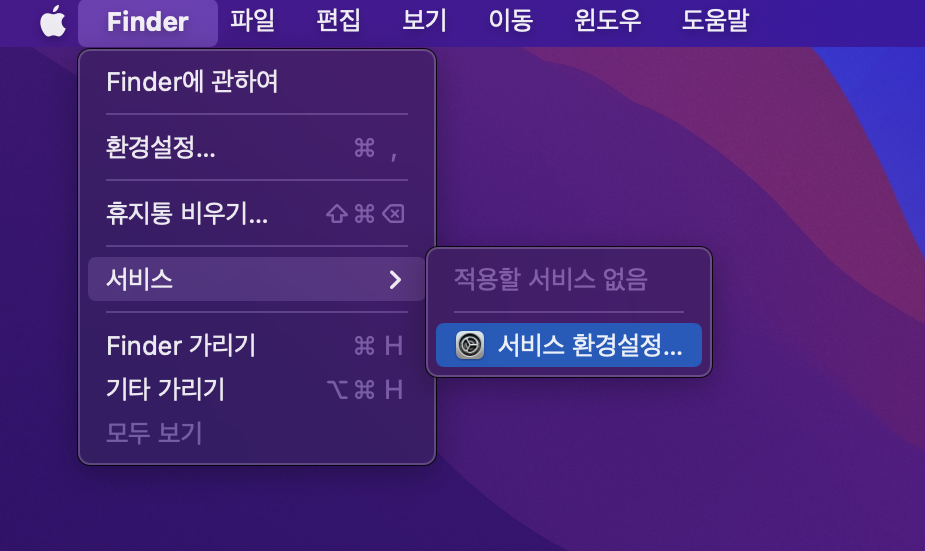 서비스 - 폴더에서 새로운 터미널 열기 체크