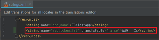 - 위치 : FCMTestApp / app / src / main / res / values / strings.xml