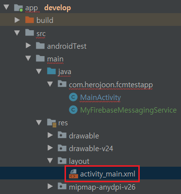 - 위치 : FCMTestApp / app / src / main / res / layout / activity_main.xml