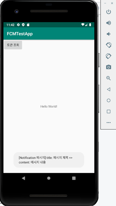 메시지 전송 후 앱이 메시지를 정상적으로 수신받아 화면에 보여주는것을 확인 할 수 있습니다.
