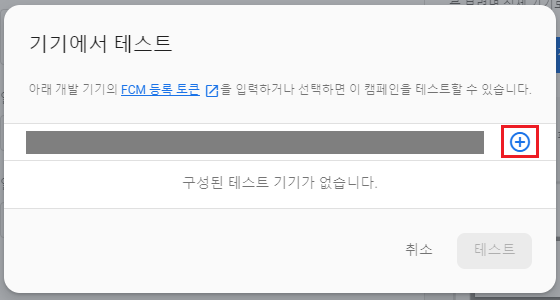 아래 화면에 기기 토큰정보를 입력 후 +버튼을 눌러줍니다.
