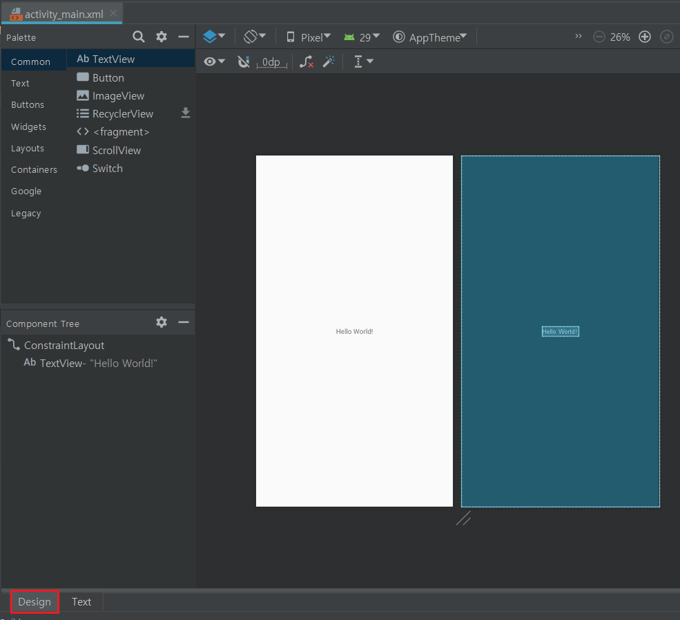 activity_main.xml화면에서 Design탭으로 이동합니다.
