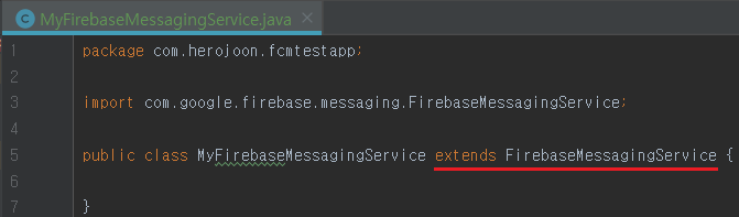 FirebaseMessagingService는 아까 위에서 생성한 MyFirebaseMessagingService.java파일에서 상속받은 클래스입니다.