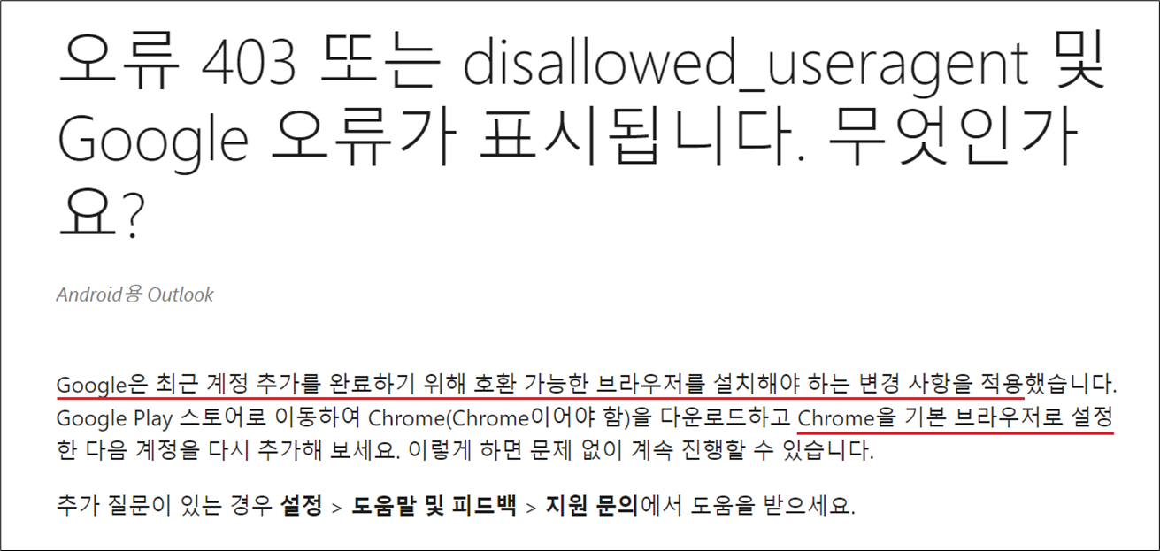 오류 403 또는 disallowed_useragent 및 Google 오류가 표시됩니다. 무엇인가요? - Microsoft 지원