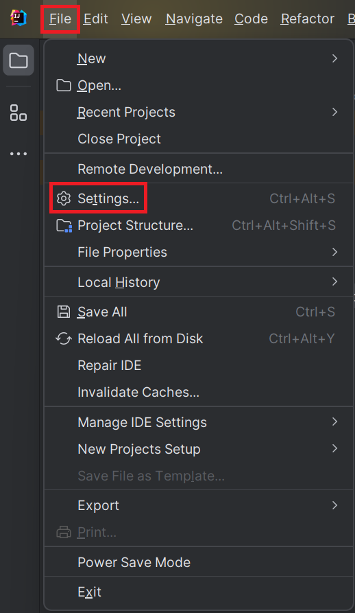 [File] - [Settings] 로 이동.