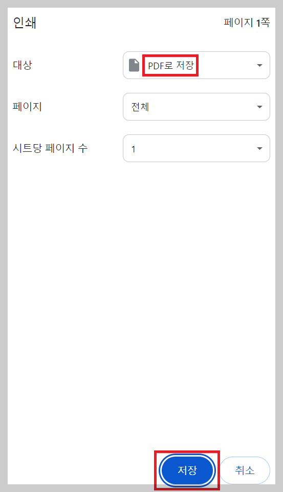 [출력]을 클릭해서 바로 PDF로 저장할 수 있습니다.