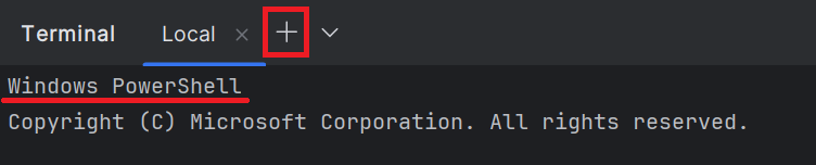 하단 Terminal 오른쪽 화살표 클릭 후 원하는 명령 프롬프트를 선택합니다.