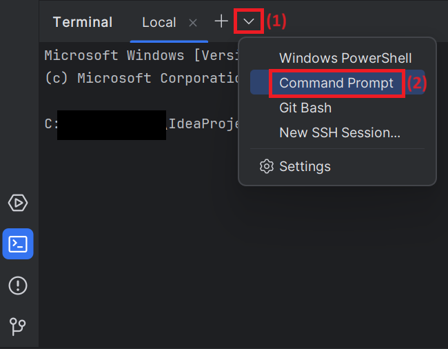 - IntelliJ에서 Terminal에 명령 프롬프트를 변경하는 방법은 두 가지가 있습니다.