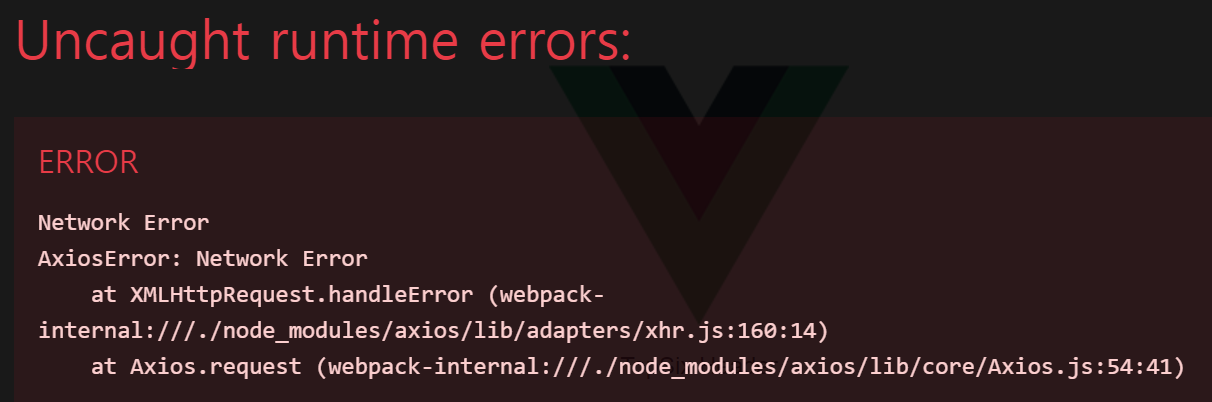 Vue3 프로젝트를 실행 시켰는데 잠시 후 아래 오류가 발생했습니다.