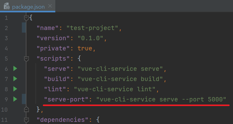 ex) "serve-port": "vue-cli-service serve --port 5000"