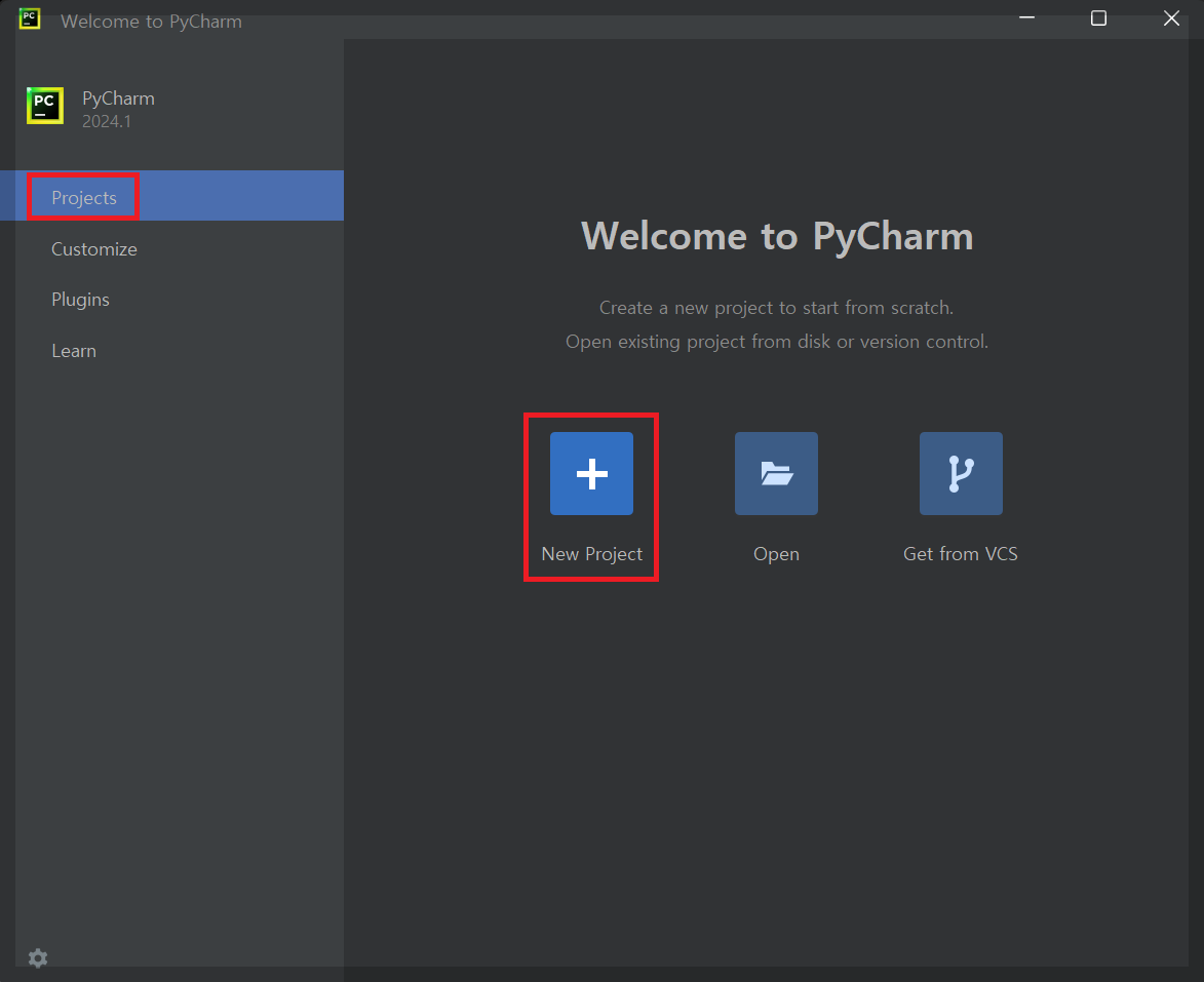 7. [Projects] - [New Project]를 클릭해줍니다.