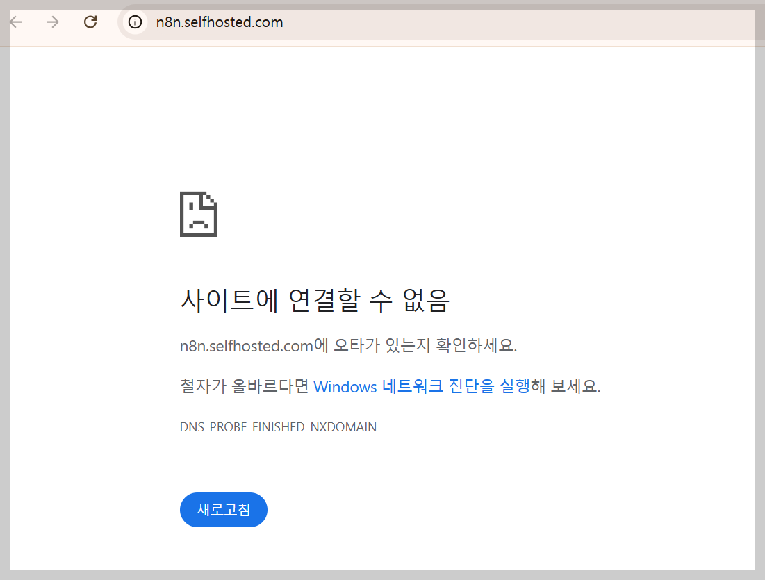그래서 loclhost가 아닌 http://n8n.selfhosted.com으로 접근 시 접근되지 않습니다.