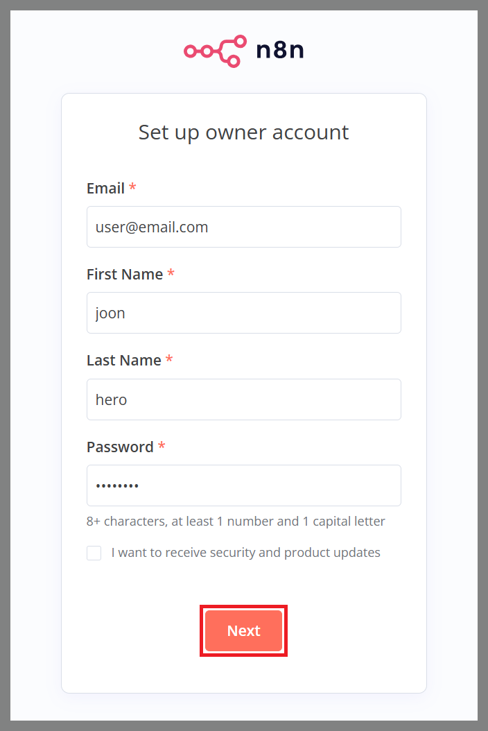 - n8n 접속 정보: http://n8n.selfhosted.com