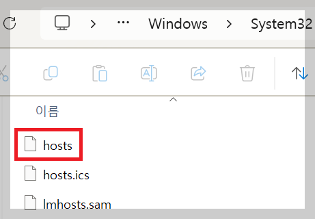 - 로컬 호스트 파일 위치: C:\Windows\System32\drivers\etc