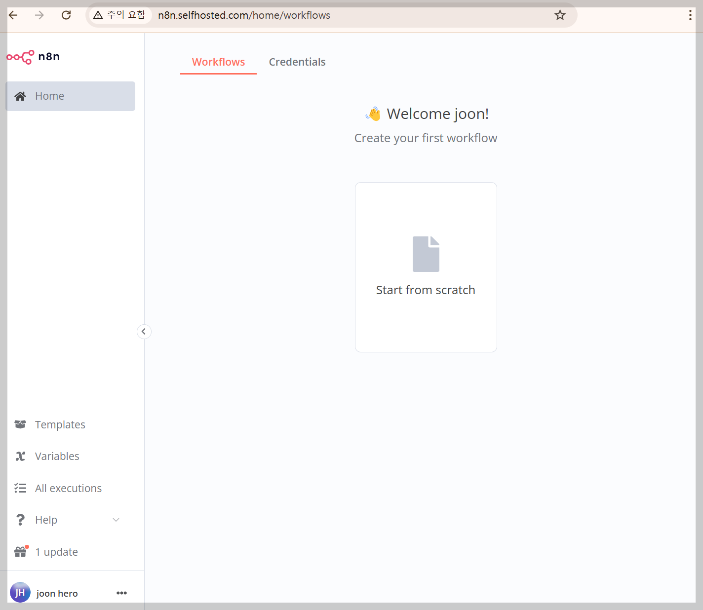 다시 n8n 지정한 도메인으로 접속해줍니다.