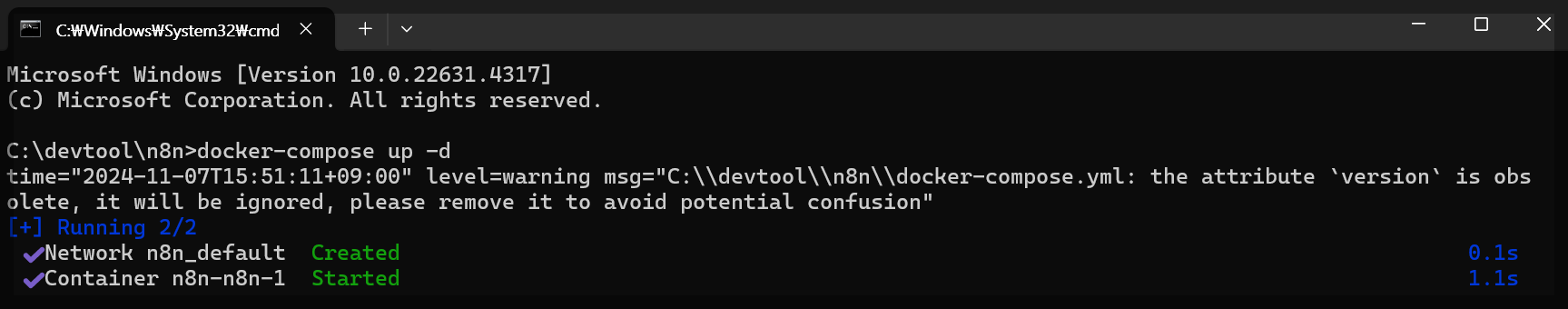 2-1-3. docker-compose.yml파일을 이용하여 n8n 실행하기