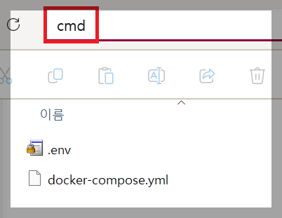 n8n 작업 폴더에서 cmd를 입력하여 명령 프롬프트 창을 열어줍니다.
