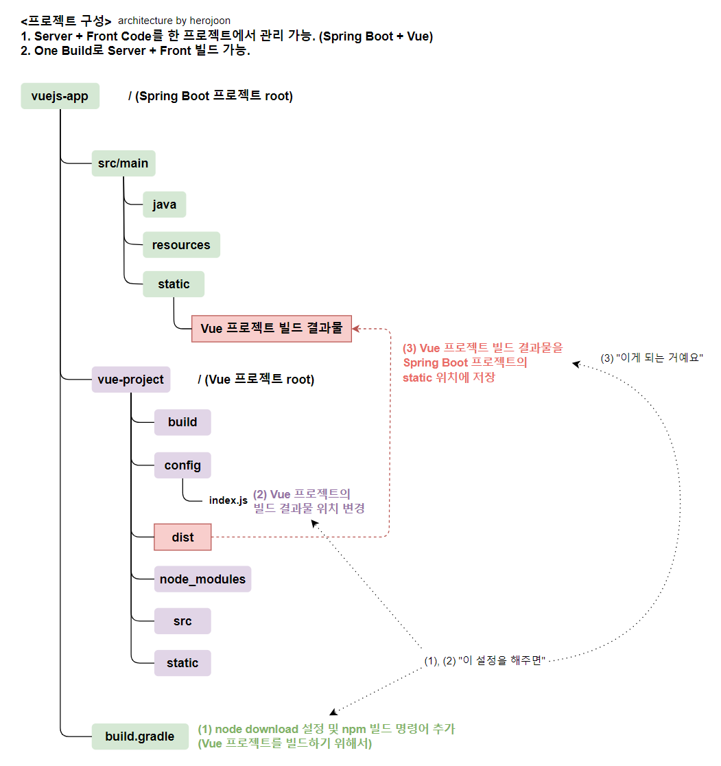 Spring Boot + Vue를 하나의 프로젝트로 관리하고자 할때 One Build가 가능하도록 프로젝트를 구성할 수 있습니다.