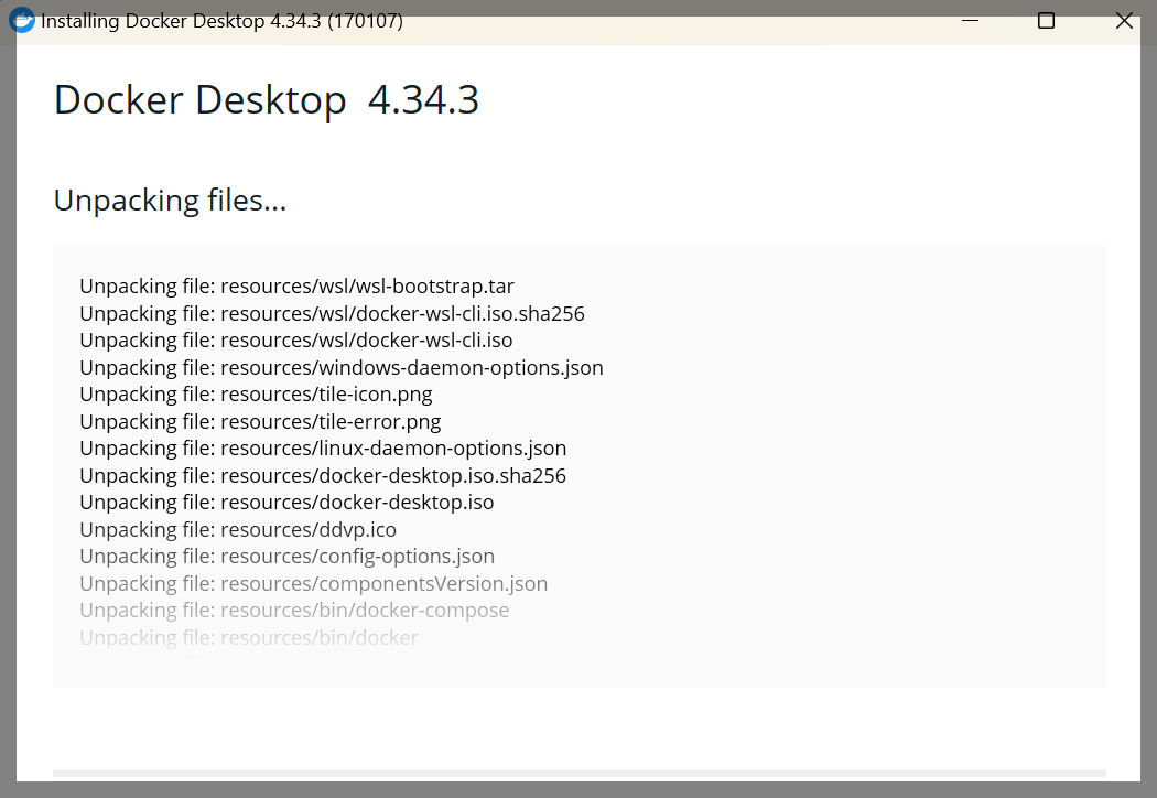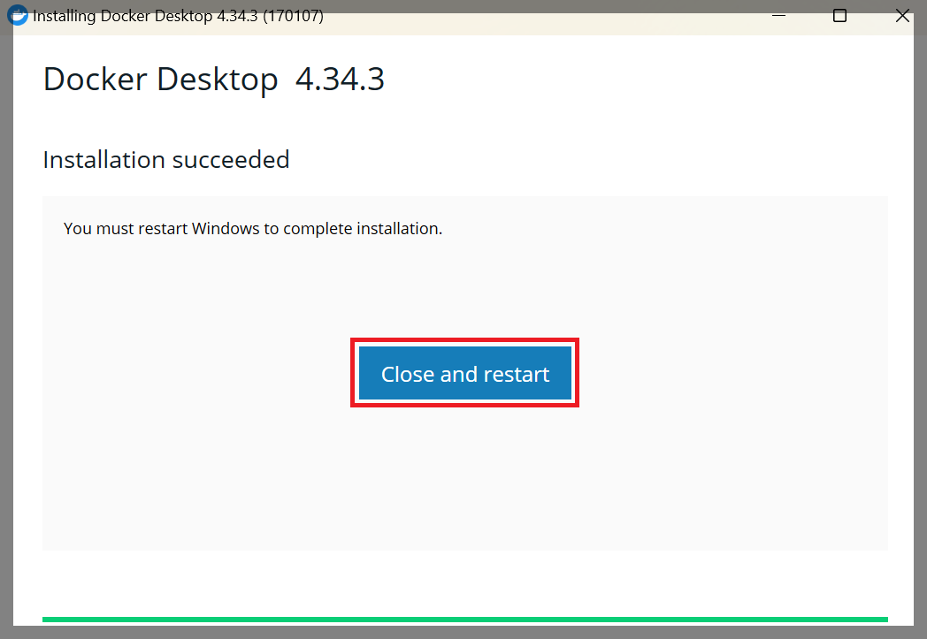 Docker Desktop 설치가 정상적으로 완료되었습니다.