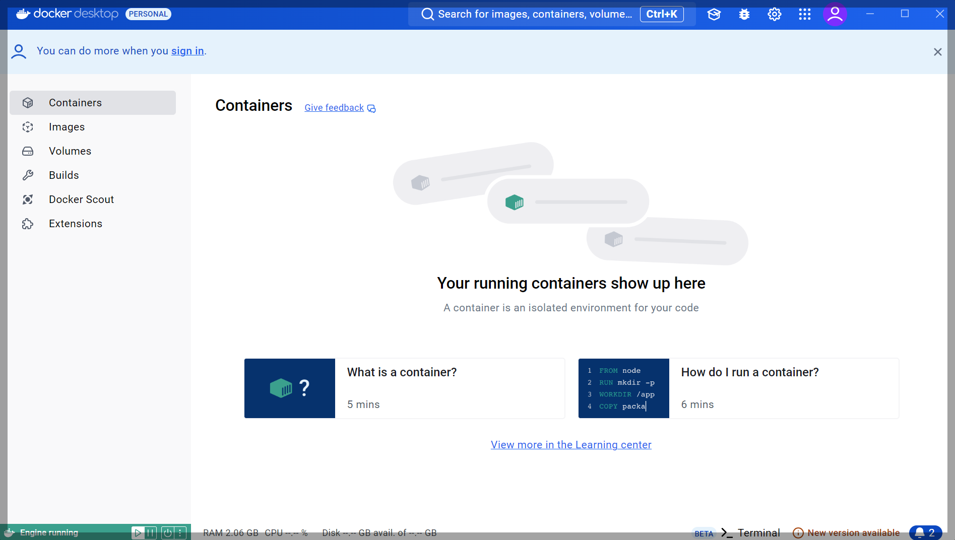 2-1. Docker Desktop에서 Terminal 기능 활성화 하기
