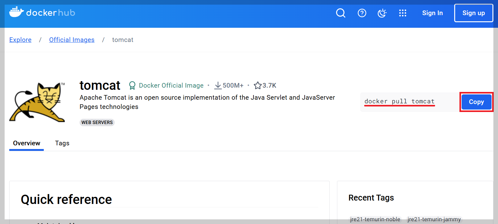 2-2-1. Docker Hub에서 Tomcat 이미지를 다운로드