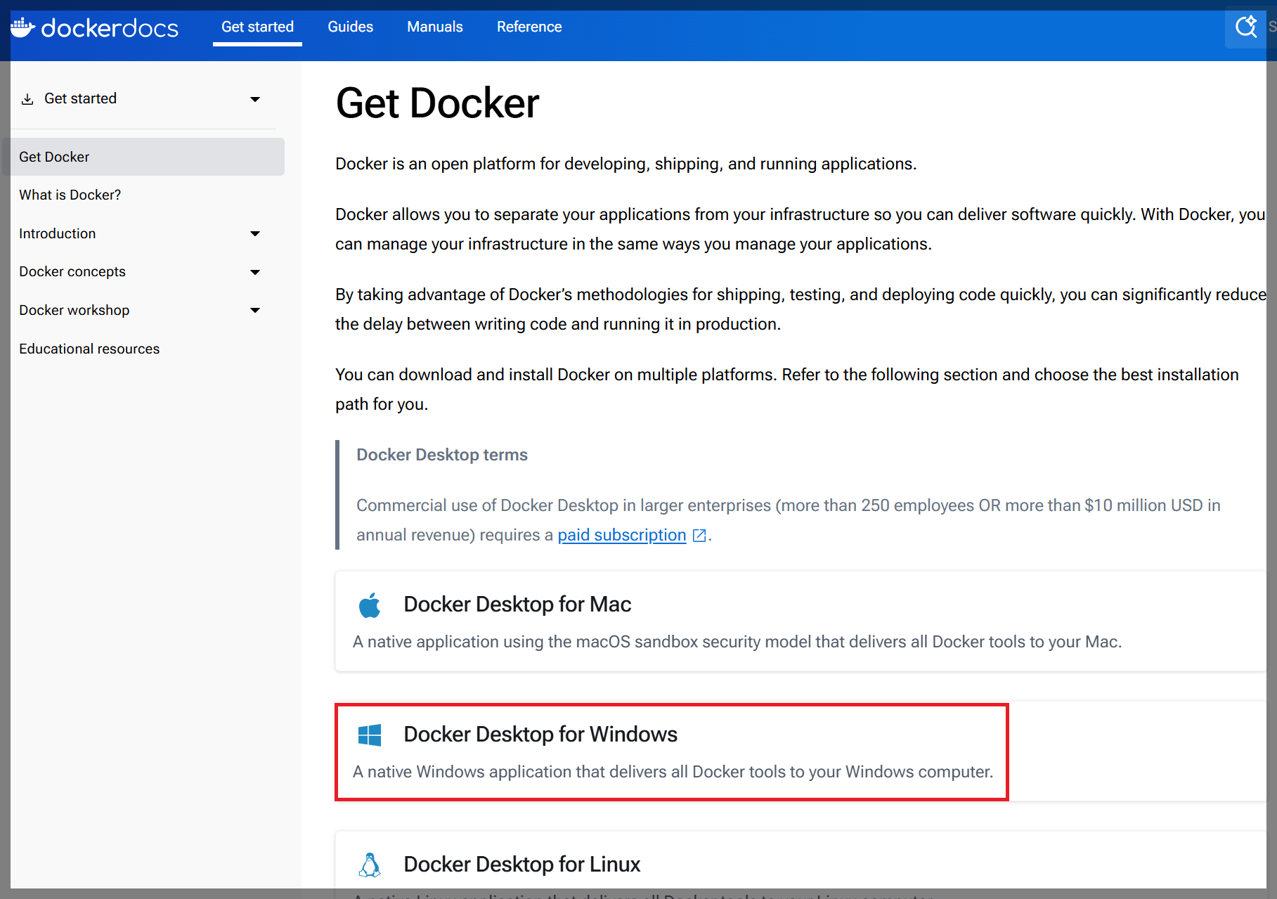 Docker Desktop 설치 URL: https://docs.docker.com/get-started/get-docker/