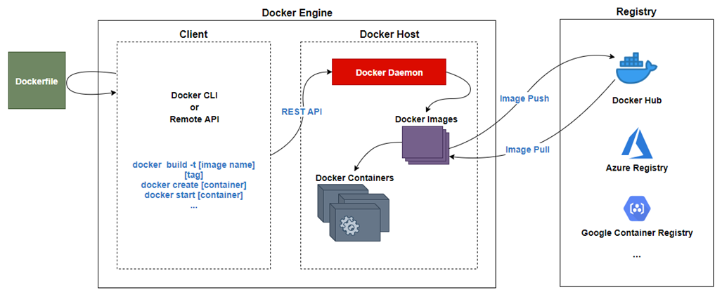 컨테이너 실행에 필요한 파일과 설정값들을 포함하고 있는 것으로 상태값을 가지지 않고 변하지 않음. ex) ubuntu 이미지 -> ubuntu를 실행하기 위한 모든 파일. ex) MySQL 이미지 -> debian을 기반으로 MySQL을 실행하는데 필요한 파일과 실행 명령어, 포트 정보등. ex) Gitlab 이미지 -> Centos를 기반으로 rubym go, database, redis, gitlab source, nginx 등 |