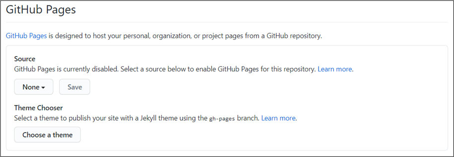 GitHub Pages - Source 아래에 "GitHub Pages is currently disabled."라는 문구가 있으면 Github Page가 제거된 것입니다. 만약 비활성화 되어 있지 않다면, [None]위치의 Selectbox를 None으로 변경 후 Save해주세요.